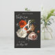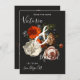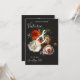 Arranjo floral botânico elegante inspirado em Rembrandt, mestre holandês, contra um fundo escuro. Este é para um Save the Date para um casamento, mas você pode alterar a redação para atender às suas necessidades.