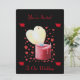 Esta ilustração original de uma vela queimada em forma de coração neste convite de casamento foi inspirada enquanto eu observava uma vela vermelha derreter. A cera vermelha de fusão está lentamente descendo pelo lado da vela à medida que ela derrete. A chama colorida de queimadura vermelha e amarela é uma forma romântica do coração. A chama representa um amor romântico e apaixonado queimando e é por isso que eu chamei a ilustração original "Burning Love". Esta ilustração romântica coloca-se realmente contra o fundo negro e o texto vermelho será certamente notado. A vela com uma chama em forma de coração é pintada em aquarela. Este é um convite para um casamento e os apóstolos "fazem", mas o texto pode ser personalizado para fazer um convite de bênção ou cerimônia civil, uma festa de aniversário, festa de noivado ou qualquer outra ocasião romântica especial. Este é um convite personalizável e pode ser personalizado com todos os detalhes do seu dia especial. O convite é simples e, no entanto, muito atraente. No verso branco do convite há títulos para reunir todas as informações que seus convidados especiais precisarão para comparecer à sua ocasião romântica.