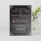 Desenho de convite de casamento vintage. Borda vitoriana com fundo de quadro-negro. Fonte rosa doce e branca. Um estilo clássico para o seu dia especial. Você também pode personalizar a fonte e as palavras para outras ocasiões como chá de panela, chá de bebê, festa de aniversário, festa de noivado e mais.