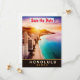 Ofereça aos seus convidados uma vista do paraíso com esta arte turística clássica de alta qualidade apresentando a silhueta de Honolulu ao pôr do sol. Seu charme retrô é ideal para o convite do seu casamento com destino tropical ou para o convite "salve a data".
