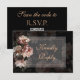 Este lindo RSVP apresenta um código QR no verso. Adicione facilmente o URL do seu casamento ao modelo. Este cartão de acompanhamento de casamento é um item correspondente em nossa Coleção de Casamento Floral Rosa Dourado Elegante e Sombrio. Veja a coleção para mais ideias incríveis. Convite de Casamento Rosa Dourado para Noite Elegante RSVP.