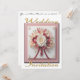 Convite para casamento com um buquê rosa de flores e fitas - O fundo do cartão é rosa. Você pode mudar a parte de trás do cartão para as informações do seu casamento relevantes para a cerimônia ou esquema de cores ou direções para o local. O escrevendo está Dourado para ir com as cores rosa e dourada do cartão.