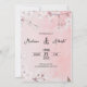 Um convite de casamento romântico e elegante com delicadas flores de cerejeira brancas em um fundo de aquarela rosa suave. O design destaca lindamente os nomes "Michael & Ariana" com caligrafia graciosa, juntamente com a data do casamento, horário e detalhes do local. Perfeito para casais que buscam um estilo de convite floral, feminino e atemporal.