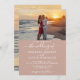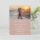 Foto de roteiro elegante convite de casamento modelo boho rosa com duas fotos, preto simples em branco.