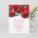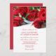 Convite de casamento em vermelho e branco com rosas e fontes elegantes.