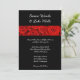 Este convite de casamento clássico romântico é mostrado em uma cor negra com rosas vermelhas adoráveis com layout formal escrito e texto em um roteiro destacando os nomes da Noiva e do Groom. O papel mostrado é o formato Personalizar este convite de casamento clicando no botão Personalizar, à direita para localizar as caixas de texto, altere o texto nas caixas apropriadas para adicionar suas informações.