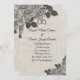 Composição de imagem e ilustração por Irisangel. Convite de casamento rosas pretas e brancas em fundo de aspecto linho para modelo de casamento formal elegante, aniversário de casamento ou festa de noivado. O texto é totalmente personalizável. Adicione ou altere completamente suas informações. Selecione uma fonte e cor diferentes. O modelo pode ser usado para qualquer ocasião especial. Basta alterar o texto para atender às suas necessidades.
