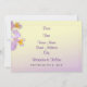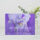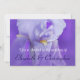 A frente deste convite tem uma íris roxa vívida. A parte de trás do convite tem algumas delicadas flores da íris sobre um fundo cor-de-rosa e amarelo de gradiente. Personalize com seus próprios detalhes de casamento.