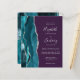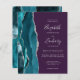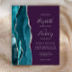 A borda esquerda deste elegante convite de casamento moderno apresenta uma cor azul-lacrimejante agata borda com falso brilho prateado. O texto personalizável combina escrita manual, placa de impressão e fontes itálicas em cinzas prateadas em um fundo roxo. O verso apresenta um design de barro e de agata prateado correspondentes.