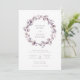 Convite de Casamento Roxo Elegante. Suave, sonhador e romântico, este convite de casamento elegante apresenta uma linda grinalda de folhas e flores em aquarela pintada à mão em tons monocromáticos de roxo, ameixa e tons suaves de rosa, com texto e caligrafia roxa combinando. O verso do convite é um branco minimalista. Encontre itens correspondentes na Coleção de Casamento Botânico Roxo Elegante.