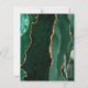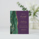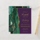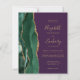 A borda esquerda deste elegante convite de casamento moderno apresenta uma esmeralda verde aquarela agate borda com falsa brilho dourado. O texto personalizável combina manuscrito dourado, fontes em copperplate e itálico em um fundo roxo. O verso apresenta um design emerald verde e dourado.