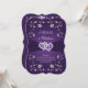 Este convite romântico e dramático para casamento em forma de colchete floral roxo e prata tem um IMPRESSO de LÍNGUA, um par de diamante IMPRESSO e brilho juntou corações de joias e flores de prata metálicas. ****POR FAVOR, OBSERVE que tudo será impressão como aparece no seu monitor; portanto, se você tiver problemas de digitação, alinhamento ou dimensionamento, entre em contato comigo para obter ajuda ANTES de solicitar. Não posso fazer nada quando o pedido for feito com Zazzle. Se precisar de outros itens correspondentes, envie um e-mail para niteowlstudio@gmail.com.