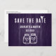 Cartão postal minimalista de convite de casamento rústico com caligrafia moderna ideal para um casamento rústico roxo no campo/ quintal/ celeiro.