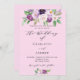 Um fundo rosa. Decorado com flores roxas em aquarela e folhagens. Personalize e adicione seus nomes e detalhes da festa.
