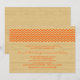 Convocação de Casamento Russo de Chevron, moderna e moderna, com uma arte digital imprimiu fundo de textura de madeira e um padrão zag de faixas de chevron laranja. Esta design é perfeita para um casamento rústico mas elegante. Fácil de personalizar, simplesmente adicione seus detalhes de casamento. Clique em "Personalizar" para encontrar mais opções de personalização.