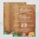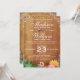 Convite De Casamento Russo Para Suculentos Florais. Apresentando várias flores coloridas e brilhantes sobre um fundo de pranchas de madeira. As bordas são embelezadas com elementos floreados brancos. Este é um convite de casamento de excelente que é rústico, mas elegante e atraente.