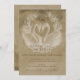 Ponha o tom para uma celebração eterno e romântica com este convite de casamento rústico, com dois cisnes formando um coração enquadrado por florais botânicos suaves. Um monograma simples e uma caligrafia elegante acrescentam um toque personalizado, enquanto o fundo morno castanho cria uma sensação de safra, perfeita para casamentos de outono ou ao ar livre. Totalmente personalizável com seus detalhes de casamento. Parte da suíte Romântica do Lago Swan para um evento coeso, veja desde salvar as datas para agradecer as cartas.