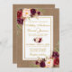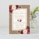 Convite de casamento Dourado Floral Rustic Wedlap Watercolor Burgundy