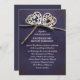 convites de casamento rústicos com dois corações de amor feitos de madeira amarrados com uma pequena corda (torção). Convites de cor azul real. Todos os objetos são imagens.