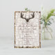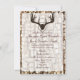 Convites rústicos do casamento de Camo do país que caracterizam um fundo da camuflagem do latido de árvore e dos antlers montados dos cervos. A parte traseira tem o mesmo fundo do latido de árvore do camo e os nomes dos noivos são centrados em uma tira do impressão do laço que dá lhe um olhar elegante. O laço é apenas um design impresso, tecido nao real do laço. Estes convites do casamento do camo do país são perfeitos para qualquer um que ama o país, caça, camuflagem, ou está tendo um casamento exterior do país.