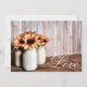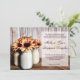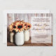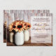 frascos de pedreiro pintados, girassóis, girassóis, flores, florais, madeira do celeiro, madeira rústica, serapilheira, convites do casamento do país, convites rústicos do casamento