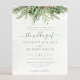 Belo convites de casamento acessíveis com ilustrações de aquarela botânica pintadas à mão de folhagens de inverno, galhos de pinheiro e abeto, cones e frutos de azevinho. Escolha perfeita para casamentos com tema de inverno ou Natal.