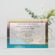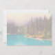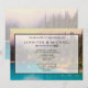 Um convite de casamento rústico com uma fotografia da paisagem do norte do Canadá como pano de fundo. Um lago de cor turquesa com uma floresta de pinheiros ao fundo e um céu enevoado e nebuloso, dando-lhe uma qualidade mágica e mística.