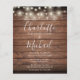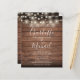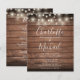 Um convite de casamento rústico orçamentário elegante com lindas luzes de corda, nomes de estilo de assinatura e tipografia chic em um fundo de madeira rústica personalizado com todas as informações do seu dia especial de casamento no verso, incluindo seu RSVP, acomodação e detalhes adicionais. Projetado por Thisisnotme©