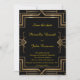 Convite de casamento Save the Date preto e dourado, grande-Gatsby, frente e verso, monograma no verso, letra cursiva