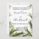 O clássico modelo de convite de casamento mostra uma palma verde que deixa design na frente, e uma mensagem personalizável no verso. Você pode personalizá-lo com o botão personalizar. Envie sua mensagem de convite de casamento para seus amigos e família usando este belo cartão. Os produtos correspondentes a este conjunto de convites de casamento são: salvar o cartão de data e o cartão postal, um convite de janto de ensaio, convite de recepção, cartões de agradecimentos, menu de casamento, cartões RSVP, cartas de agradecimento e vários gabinetes de convite.