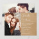 Convite de casamento com script moderno rústico kraft com suas 2 fotos especiais e detalhes da celebração em um fundo kraft rústico. Criado por Thisisnotme©