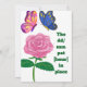 Este convite de casamento personalizável apresenta um design encantador com uma lua crescente, flores delicadas e borboletas vibrantes. A frente do cartão inclui espaço para os nomes do casal e uma mensagem de convite sincero: "No nosso dia especial, temos o prazer de convidar nossos entes queridos especiais para compartilhar nossa alegria na vitória do nosso amor." O verso fornece espaço para detalhes do evento, incluindo data, hora e local, adornado com uma rosa e duas borboletas.