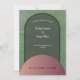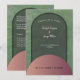 Celebre seu casamento em estilo com este simples arco e formas redondas em tons de terra natural como verde sábio e ouro rosa brilhante com fundo verde. O convite para o casamento é simples, elegante e tem um estilo moderno de bico. Personalize-o com seus detalhes, seu monograma e programa para uma celebração verdadeiramente notável.