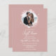 Um convite de casamento simples e elegante com monograma floral em falso foil cor-de-rosa. Fácil de personalizar com seus detalhes. Convite de casamento moderno boho editável, convite de casamento com foto e grinalda, personalizável, fonte manuscrita caligrafada, simples, elegante.