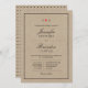 Um convite de casamento na moda moderno com tipografia preto e branco com um coração vermelho giro em um fundo texturizado em kraft.
