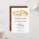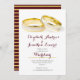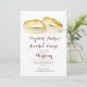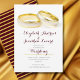 Um convite elegante com alianças de casamento dando ao convite uma sensação muito tradicional. Os anéis estão sobre um simples fundo branco com a tipografia em uma fonte moderna. A fonte está novamente em preto simples com a palavra Casamento em Burgundy. Um bar de cor dourada sublinha a palavra casamento. O inverso do convite está em uma cor Borgonha com um padrão de listras de ouro no cartão. O convite é facilmente personalizável para suas informações.