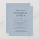 Convite de casamento para jantar de ensaio em azul empoeirado simples. Uma alternativa menor de 4,5” x 5,6” a um preço acessível. Disponível em papel cartão SEMI-BRILHANTE de 110 lb, que é a opção padrão (mais grosso para convites), OU em papel mais fino de acabamento SEDA de 80 lb (ideal para inclusões). Os envelopes são opcionais e têm um tamanho ligeiramente maior que o cartão. Fácil de personalizar com suas palavras. Você também pode alterar as cores do texto e do fundo em ambos os lados, se desejar, através da opção "Personalizar Mais".