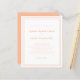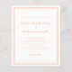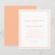 Convite de casamento econômico e elegante com design contemporâneo minimalista com uma borda de moldura dupla em cor de pêssego em um fundo branco crocante. A redação tradicional fornece sofisticação moderna e atemporal. Personalize o design do casamento com seus detalhes em letras e caligrafia chic em pêssego. O verso do cartão combina com a cor sólida de pêssego.