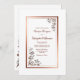 Um elegante rosa de ouro/cobre fez fronteira com um simples convite de casamento, que continha embelezamentos florais de ouro quente nos cantos diagonais.