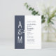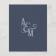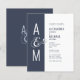 Convite de casamento econômico. Design de casamento moderno simples geométrico. Azul escuro cinzento e branco. Tipografia ousada e elegante. Monogramas da Noiva e do Noivo e um grande e comercial como símbolo de união.