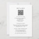 Este convite de casamento minimalista em preto e branco apresenta um layout formal atemporal com a redação do convite na frente e os detalhes do evento no verso. Um código QR moderno no verso permite que os convidados façam o RSVP online facilmente, mantendo o seu conjunto elegante e sem bagunça. Perfeito para casamentos de gala, locais elegantes e casais que amam um design sofisticado e limpo com um toque contemporâneo.