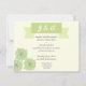 Este convite de casamento apresenta suculentos desenhados à mão em verde e azul com uma faixa verde. A frente e o verso do convite são uma cor de creme correspondente.