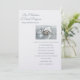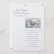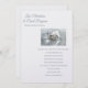 Este convite de casamento é mostrado em um layout clássico em um fundo de Shimmer de Pérolas Brancas com um layout moderno. Foto de dois anéis de casamento amarrados em um travesseiro de cetim branco. Texto em cor azul empoeirado. Personalize este item, retirando o texto do exemplo e colocando suas informações nele. Imagem de ações.