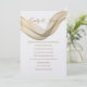 Este convite para o casamento é mostrado em um layout clássico em um fundo branco mostrado em uma opção de papel de Peal Shimmer. Selecione o papel escolhido. Gráfico do Dourado véu revestido pela frente superior. Os nomes dos casais se misturam com o gráfico de véu em uma cor de Ouro no topo. Texto do corpo mostrado em Ouro por baixo da fita do véu. Personalize este item, retirando o texto do exemplo e colocando suas informações nele. Imagem de ações.