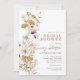 Este convite de chá de panela de noiva de outono elegante e sofisticado apresenta lindas flores silvestres em tons de rosa e azul pintadas à mão em aquarela, dispostas em um lindo buquê e uma caligrafia elegante, perfeito para casamentos de primavera, verão ou outono.