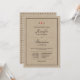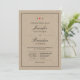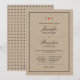 Um convite de casamento moderno e elegante com tipografia preta e branca e um coração vermelho fofo em um fundo texturizado kraft.