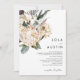 Nós projetamos este convite de casamento tradicional floral branco para completar seu casamento tropical escuro rústico. Com a sua aquarela boêmica verde para as suas modernas flores boho de inverno, incluindo protea, dahlia, e lótus secos, a design deve decifrar o seu tema moderno, minimalista, verde e branco. Altere o texto e adicione uma foto para torná-lo seu. Além disso, veja o resto da coleção para encontrar itens coordenadores que juntarão todo o seu casamento!