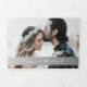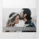 Convite de casamento simples, elegante, moderno com caligrafia em prata-cinza preto e branco, com foto do casal na frente.