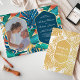 Convide seus hóspedes com este convite de casamento dobrado único que inclui flores de hibisco vibrantes e folhas tropicais com tipografia elegante e padrão real de folhas de folha de ouro no exterior. Basta adicionar os detalhes do seu evento neste modelo fácil de usar e enfeitar este cartão com a sua foto favorita para torná-lo um convite único.