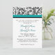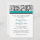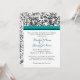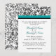 Este convite sofisticado apresenta padrões de design de impressão floral preta e um toque de azul turquesa com uma barra que atravessa a parte superior na frente. Este convite de casamento lindo e elegante é ótimo para casamentos com cores lilás, roxo, branco e preto. Procure o RSVP correspondente na minha loja!